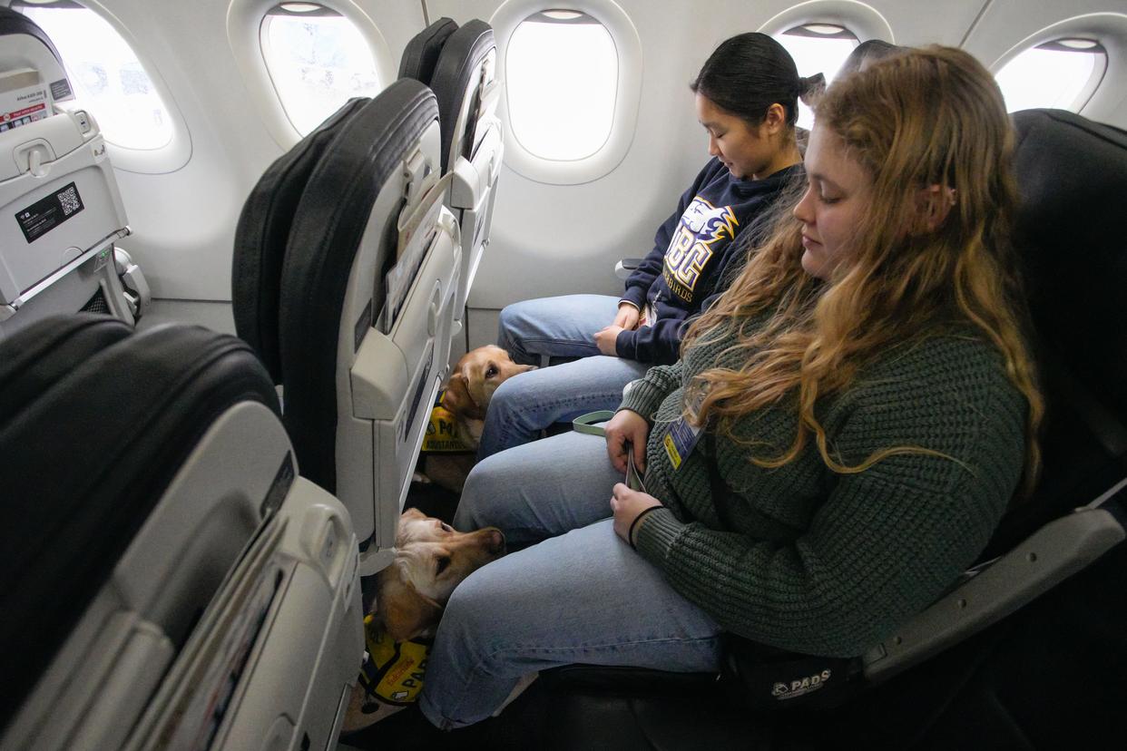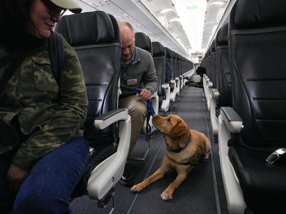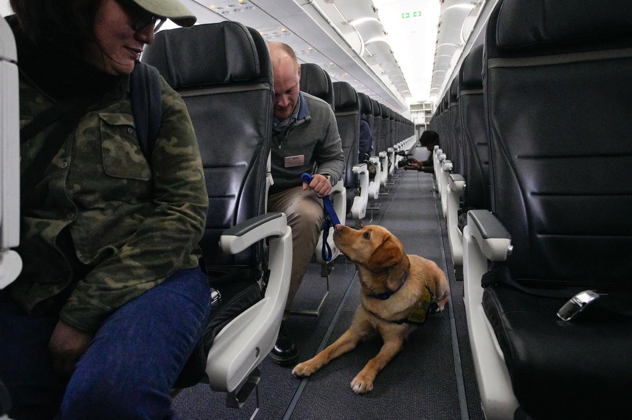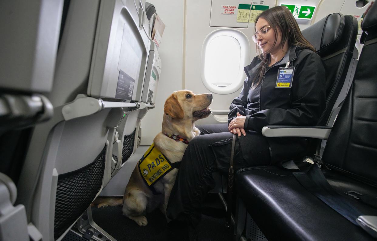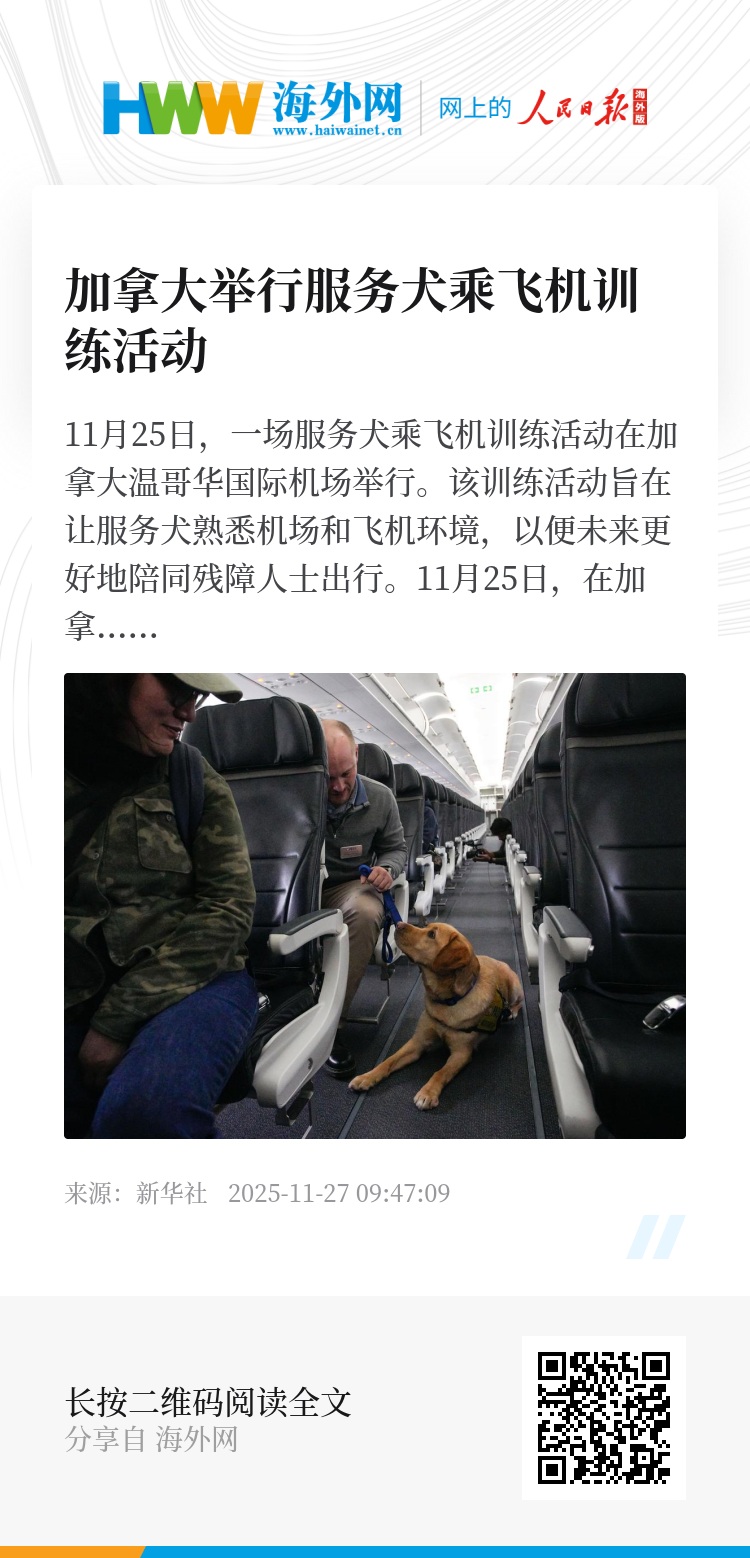 11月25日,一场服务犬乘飞机训练活动在加拿大温哥华国际机场举行。该训练活动旨在让服务犬熟悉机场和飞机环境,以便未来更好地陪同残障人士出行。