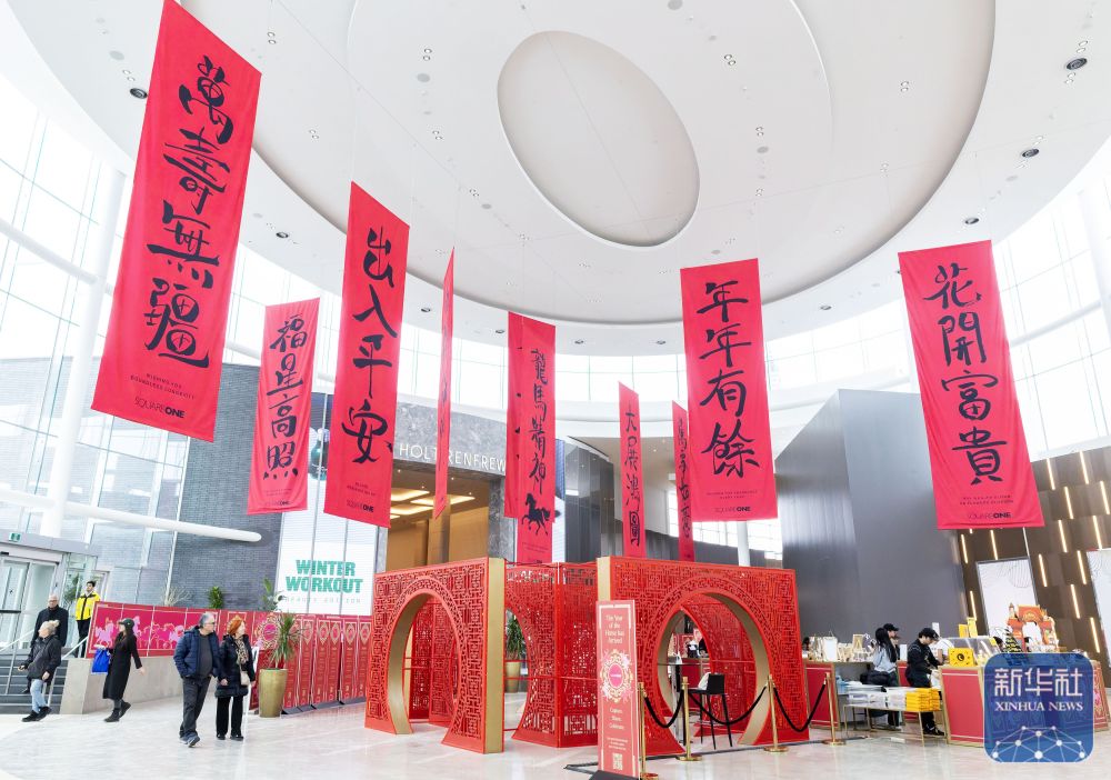 这是2月6日在加拿大安大略省米西索加一处购物中心拍摄的迎接春节的装饰。