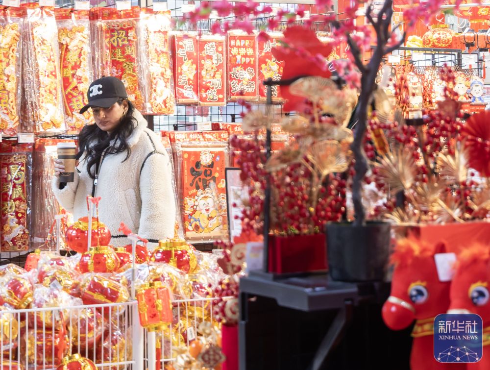 2月6日,在加拿大安大略省马克姆一处商场,一名女子浏览春节饰品。