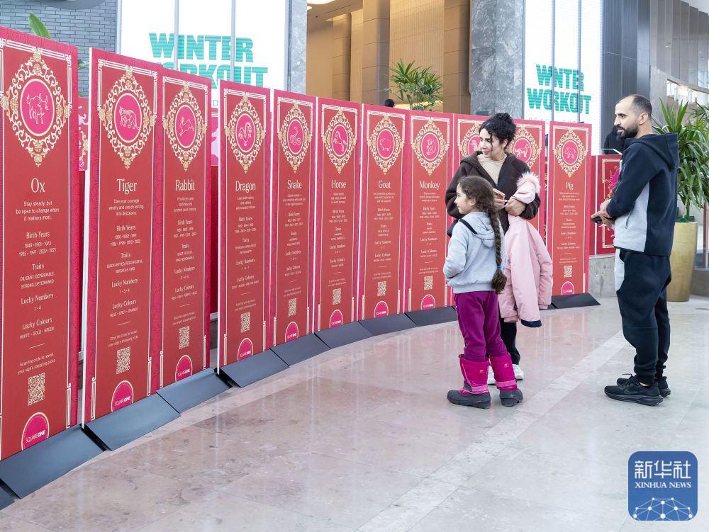 2月6日,在加拿大安大略省米西索加一处购物中心,人们观看有关中国十二生肖的介绍。