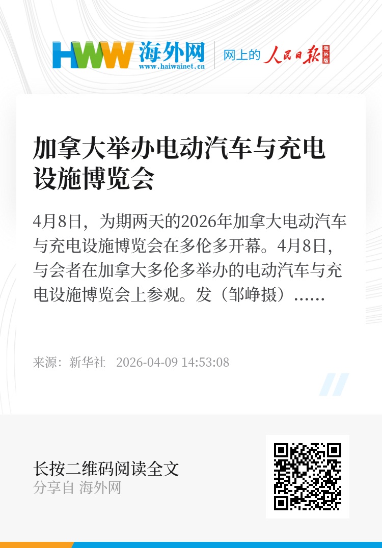 4月8日,为期两天的2026年加拿大电动汽车与充电设施博览会在多伦多开幕。