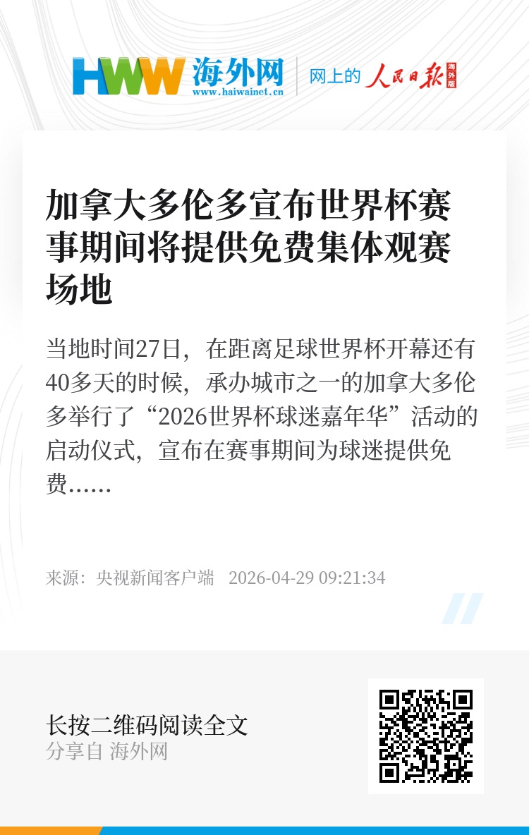 当地时间27日,在距离足球世界杯开幕还有40多天的时候,承办城市之一的加拿大多伦多举行了“2026世界杯球迷嘉年华”活动的启动仪式,宣布在赛事期间为球迷提供免费的集体观赛场地。